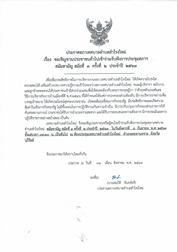 รายงานการประชุมสภาเทศบาลตำบลสำโรงใหม่ สมัยสามัญ สมัยที่ ๒ ครั้งที่ ๑ ประจำปี พ.ศ.๒๕๖๗