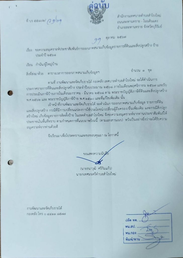 งานพัฒนาและจัดเก็บรายได้ เทศบาลตำบลสำโรงใหม่ ออกสำรวจพื้นที่ ที่ดินและสิ่งปลูกสร้างเพิ่มเติมประจำปีงบประมาณ 2568.ภายในเขตเทศบาลตำบลสำโรงใหม่By admin / 1 ตุลาคม 2568 จำนวนผู้เข้าชม : 13