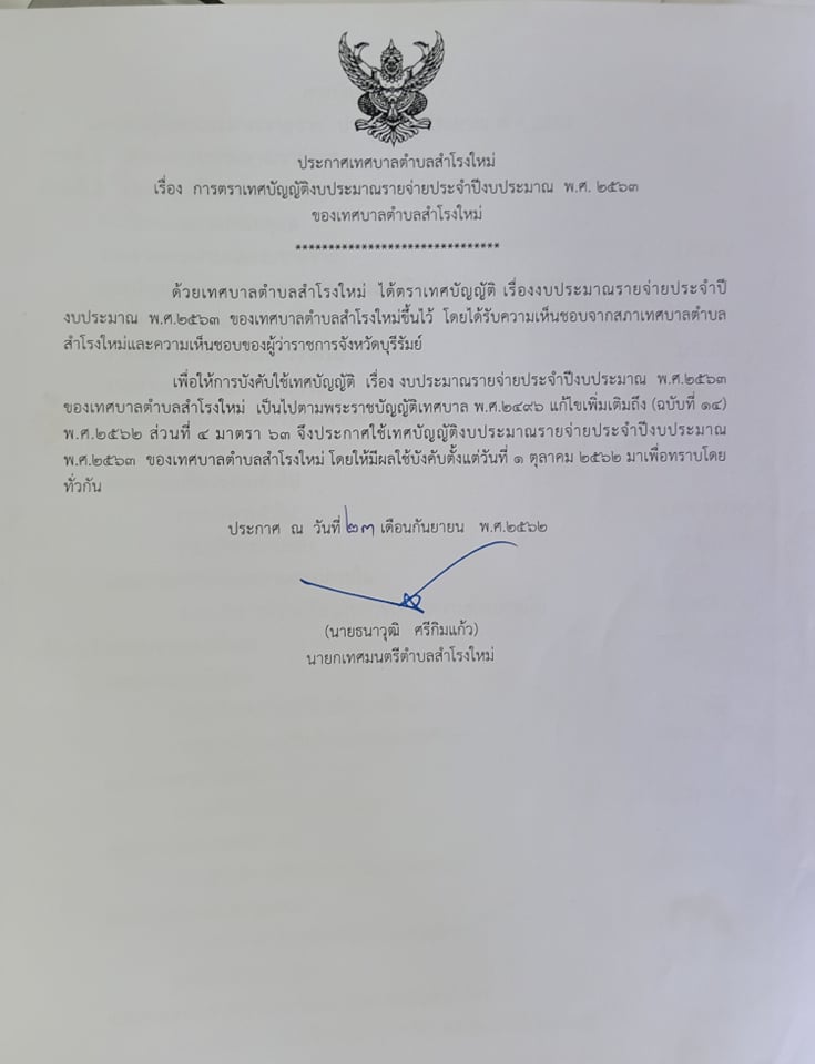 เทศบัญญัติงบประมาณรายจ่าย ประจำปีงบประมาณ พ.ศ.2566